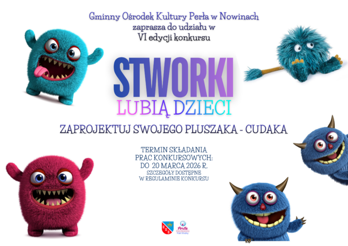 Gminny Ośrodek Kultury Perła w Nowinach ogłasza start VI edycji konkursu, który zmienia dziecięce marzenia w rzeczywistość. „Stworki lubią dzieci – zaprojektuj własnego pluszaka – cudaka” to inicjatywa skierowana do młodych artystów w wieku od 5 do 12 lat.