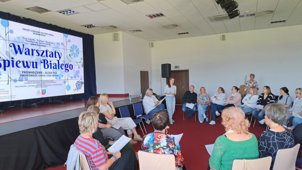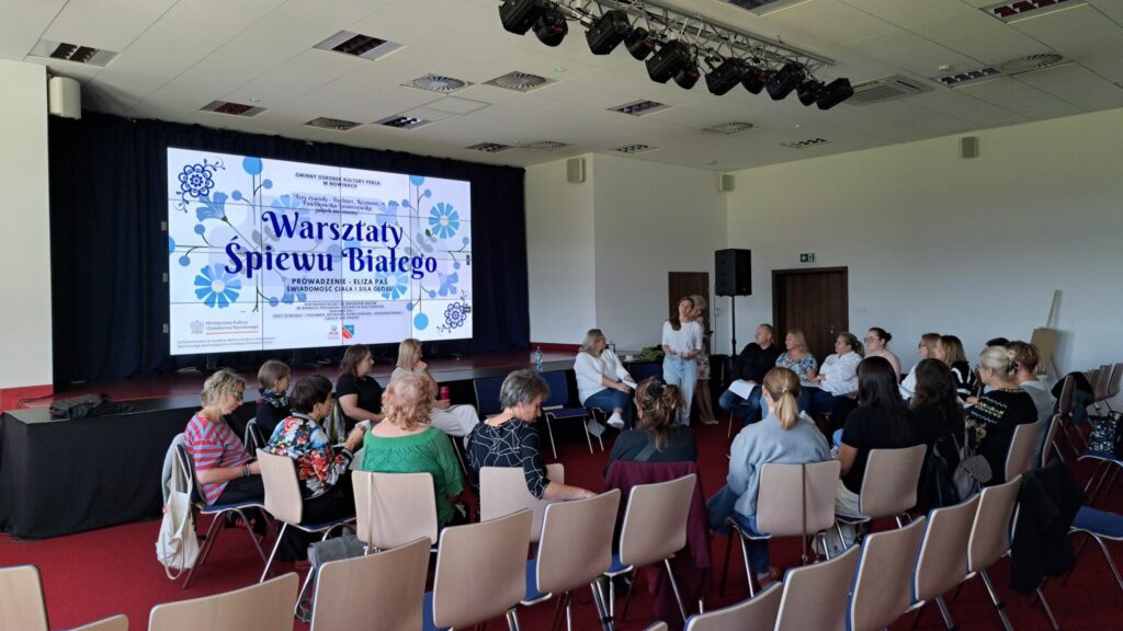 27 września w sali koncertowej GOK Perła odbyły się warsztaty śpiewu białego prowadzone przez Elizę Paś-Dymitrów. Wydarzenie cieszyło się ogromnym zainteresowaniem – wzięło w nim udział liczne grono uczestników nie tylko z terenu gminy Nowiny, ale również z całego województwa.